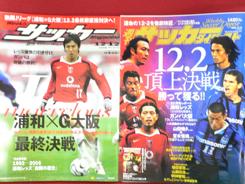 サッカーダイジェストは、レッズの闘莉王・ワシントン・鈴木啓太とガンバの3選手が表紙になって、巻頭カラーで最終節への特集が掲載されています。