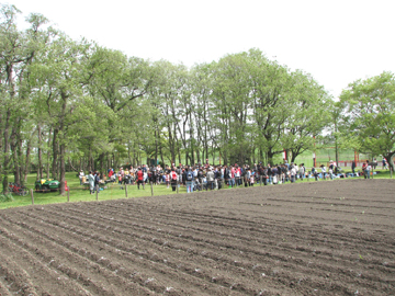 この日は開始式とオリエンテーション、サトイモの植え付けを行なう予定だったが、前日までの雨の影響で畑に入ることができず、残念ながら植え付けの作業は次回へと延期となった。