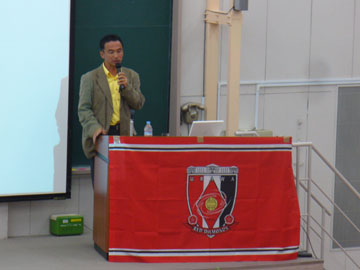 スポーツマネジメント概論は、2004年12月に埼玉大学と提携を締結したことをスタートに、その協力関係の一環として、2005年から公開授業として開講された授業で、今年で6年目を迎えます。スポーツマネジメント概論には、浦和レッズから毎年数名の講師を派遣し、その他にも、Jクラブ、ホームタウン、メディアなどさまざまなジャンルの方が講師を務めます。学生の皆さんはもとより、一般社会人の皆様にも、スポーツマネジメントのノウハウなどを学んで頂くことができる貴重な授業となっています。