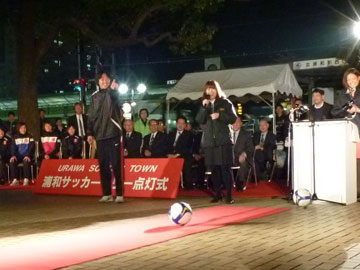 冒頭の主催者挨拶では浦和サッカーツリー点灯式実行委員会の染谷幸一会長より、「光のイルミネーションで浦和レッズを応援しようということで、この点灯式は行なわれています。残りのリーグ戦は6試合ですが、全勝して来年につなげてほしいと思います。そして浦和レッズレディースは今年、準優勝でした。来年こそは両チームがともに優勝することを願って皆さんで一緒に応援しましょう」との言葉をいただいた。