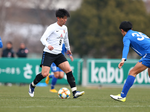 前半、やや筑波大にペースを握られる展開となったが、レッズは徐々にコンビネーションで崩すシーンを増やしていき、23分に武藤がアンドリューとのパス交換で右サイドへ抜け...