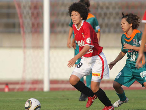【荒川恵理子】 ゴール前まではいっていましたが、最後のところが合わずという場面が多かったです。 (ハットトリックしたが?)1点目はPKを蹴らせてもらって、決めることができました。2点目は、中央でのワンツーという狙いはありました。ただ、綾子(北本)へのボールがちょっとずれてしまいましたが、それを綾子が頑張ってくれて、返ってきたところを自分のイメージに近い形でゴールすることができました。3点目については、紗希(熊谷)が顔を上げてくれたときに裏にスペースがあったので走り出して、いいボールが来たので、シュートまで持ち込め...