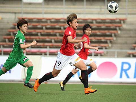 立ち上がりから積極的に相手チームに攻め入るレッズレディース。しかし、前半5分にDFのクリアミスを奪われると、そのまま日テレのFW宮澤ひなたがDFを振り切り、左足で先制点を奪った。早い時間での失点を取り返したいレッズレディー...