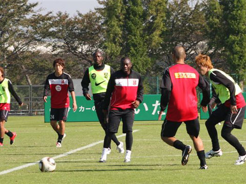 6日、明日のサンフレッチェ広島戦帯同メンバーは10時30分から大原サッカー場でトレーニングを行なった。頭上には雲1つない空が広がり、日なたは11月とは思えない暖かさだった。 選手たちは一度集合してフィンケ監督の話に耳を傾けた後、ランニングをスタート。約6分体をほぐしながら走り、ストレッチを入れてからボールを使ったトレーニングへ。山岸、加藤の2人は専用メニュー、...