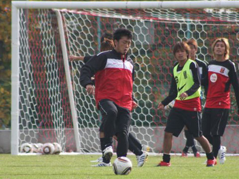 13日、チームは10時から上空を雲に覆われた大原サッカー場でトレーニングを行なった。