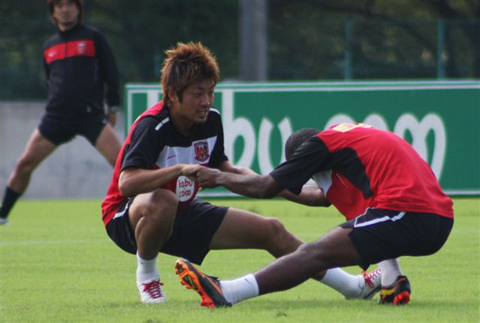 6日、チームは10時から約25分のミーティングを大原サッカー場クラブハウスで行なってから、グラウンドへ。この日の大原は晴れ。10月にも関わらず、初夏を思わせる日差しの強さだった。10時35分過ぎにフィンケ監督の笛で集合すると、ジョギングとエクササイズでトレーニングをスタートした。 体をほぐした後は、1人1個ボールを持ってドリブルとリフティング、ショートダッシュやステップワークを挟んでから、さらにショートパスや浮き球のパスなど、ボールコントロールメニューに取り組んだ。 給水休憩後、フィ...
