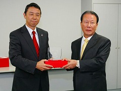 24日、ACL準決勝・第2戦の試合前、浦和レッズから城南一和に向けて、記念品の贈呈式が行なわれた。レッズからはクラブエンブレム入りのクリスタルが贈られ、城南一和か...
