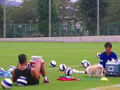 18日の練習にはワシントンが愛犬のアリエル(犬種:シーズー)とともに大原サッカー場へ。練習中はリードにつながれておとなしくしていたが、練習が終わって土田GKコーチがリードから解放すると大は...