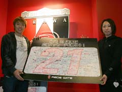 梅崎にREDS GATE応援メッセージボードを贈呈