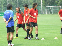 FC東京戦の翌日、6日のトレーニング中の出来事。先発メンバー以外の選手たちは、ピッチに置かれたミニコーンの間を太ももを上げてテンポよく抜けていく『ステップワーク』をこなしていた。すぐ横で見守る福田コーチが、ここでやたらと永井を誉め始める。