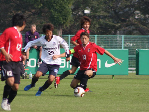 先発メンバーはGK大谷、ディフェンスラインは右から若井祥吾(ユース)、濱田、小出啓太(ユース)、永田の4人。ボランチを啓太と林が組み、中盤右には加藤、左に宇賀神、FWにはタンココーチと高崎が入った。